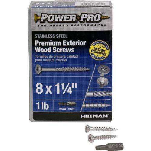 Power Pro® Premium 305 Stainless Steel Exterior Wood Screws offer superior corrosion resistance, and are perfect for decking and many other outdoor projects. Power Pro® Premium Exterior Wood Screws include a limited lifetime guarantee against rust and corrosion.