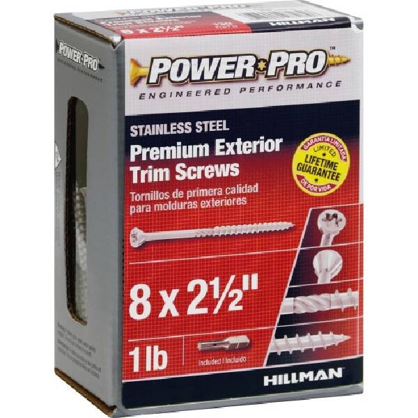 Power Pro premium exterior trim screws with star drive are ideal for composite decking, wood decking and exterior trim. The "Star Drive" technology featured on these screws virtually eliminates camout for a smooth, effortless drive every time. The fastener coating is guaranteed against rust and corrosion within 5 miles of coastal water. Power Pro premium exterior trim screws include a limited lifetime guarantee against rust and corrosion.