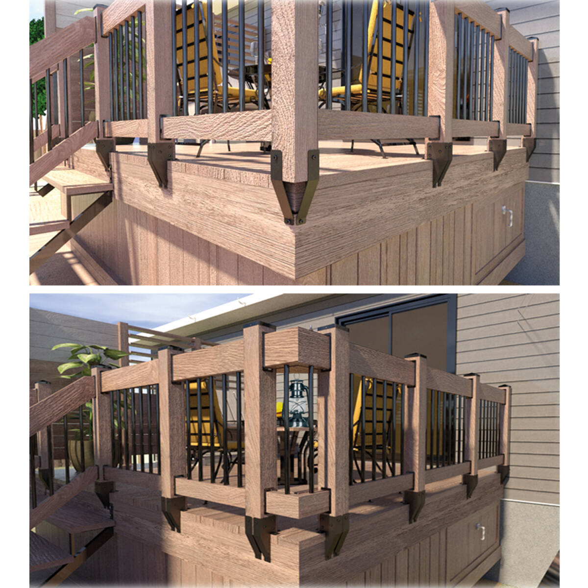 Stirrup made of galvanized steel. Allows you to increase the usable living space while using a 4 X 4-inch post. Also gives a decorative touch to your patio.