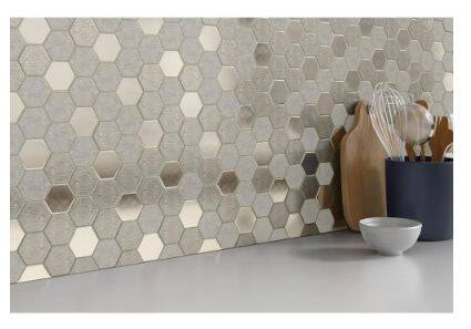 Glitz™ is a collection of shimmering mosaics that evoke a captivating aesthetic with brush-like movement. Metallic accents and layered texture take form in hexagon shapes. With an array of eye-catching color variations, Glitz enables endless design opportunities.