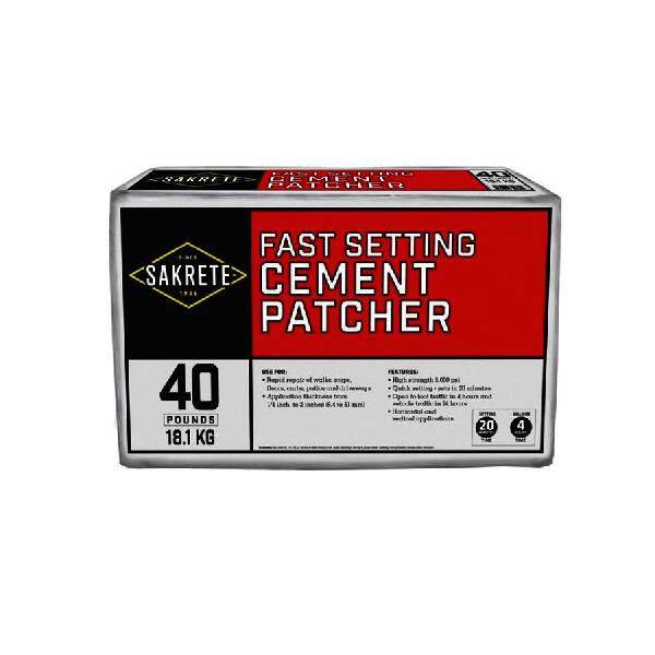 SAKRETE Fast Setting Cement Patcher is a pre-blended, fast setting mixture of special cementitious materials, additives and sand. Sets in 20 min. For the rapid repair of concrete or masonry substrates.
