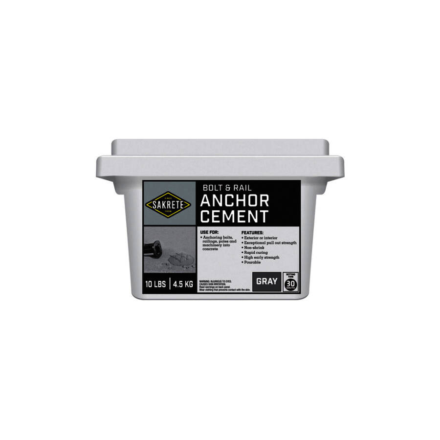 Anchor cement is a mixture of cement, sand and special additives. For the rapid setting of bolts, railings and machinery into concrete, brick or stone. SAKRETE's bolt and rail anchor cement will ensure your particular anchoring project is completed quickly and properly. This highly durable mixture sets rather quickly and is intended for the rapid setting of bolts, railings and machinery into concrete, brick or stone.