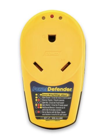 The Camco PowerGrip RV 30-Amp Circuit Analyzer Adapter with Integrated Surge Protection and Fault Indication helps protect your RV from power surges. Diagnostic LEDs indicate wiring faults when you connect your electrical cord to the power pedestal. The circuit analyzer indicates faults for reverse polarity, open neutral and other wiring issues. Includes integrated surge protection of up to 1,050 Joules. 30-Amp male (NEMA TT-30P)/30-Amp female (NEMA TT-30R). Does not protect against sustained high or low voltages. Patented.