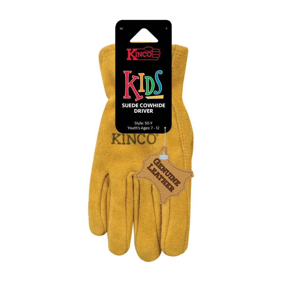 Kinco® Suede Cowhide Gloves, Leather, Tan, Thumb Type: Keystone, Cuff Type: Shirred Elastic Back, 6 in L, Number of Pieces: 12