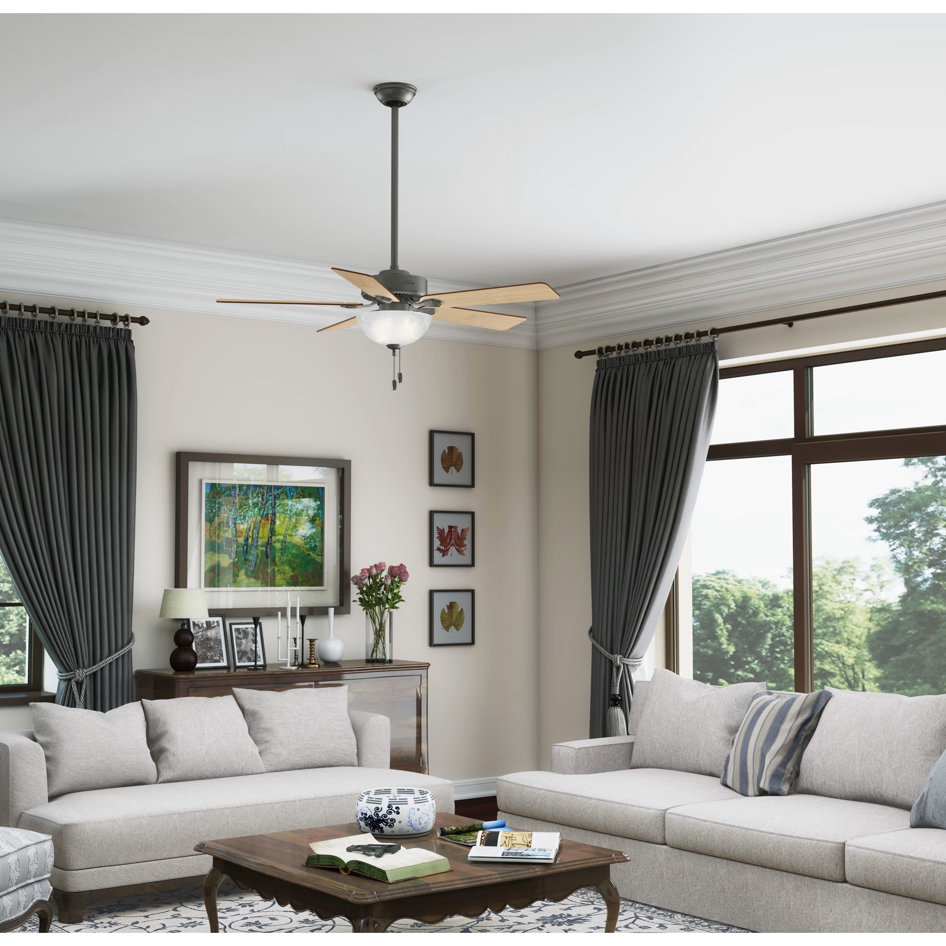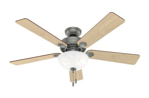 The 52-inch Swanson ceiling fan features easy-to-use pull chains and energy efficient LED light.You can install this Hunter fan to every room in your home knowing it’s wobble free, whisper quiet, and long lasting. As a part of the Professional Series, the Swanson Collection is available in a variety of sizes, finishes, and light kit combinations.
