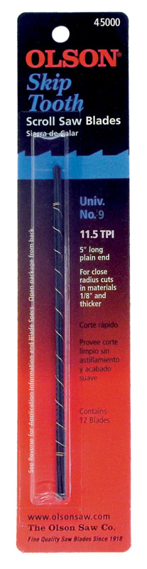 5-Inch 11-1/2-Tpi Plain End Skip Tooth Scroll Saw Blade, 12-Pack