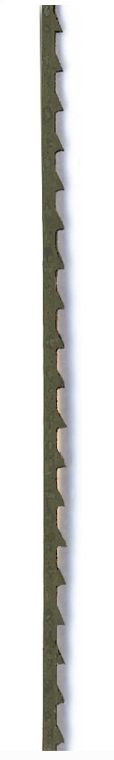 Skip tooth blades are available in a range from the finest [40000 (#3/0) size to the 410DZ for coarser sawing of thicker materials. For hand or machine sawing of wood, plastic and fibrous materials. Skip tooth blades cut fast, provide good chip clearance and smooth finishes. Select the blades you want from the menu above. Skip tooth scroll saw blades may outperform metal cutting or jewelers piercing scroll saw blades in cutting metal. Any skip tooth blade up through a universal #5 will cut metal but universal #3/0 to universal #2 is preferred for inside cuts and marquetry panels. Skip tooth blades can cut cold-rolled steel, copper, brass, aluminum sheet and bronze. Soft metal up to 1/8 in thick can be cut easily, whether a single sheet of stock or several thinner sheets in a stack.