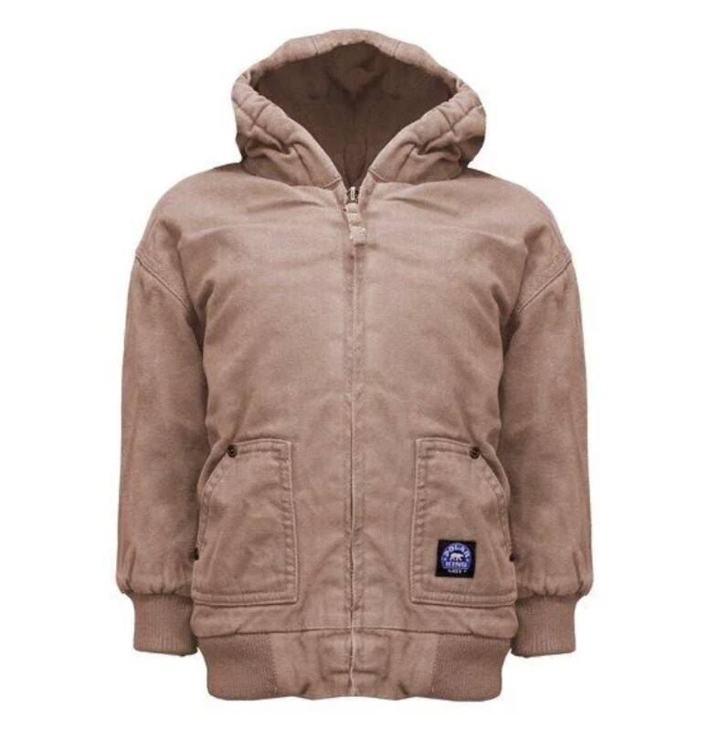 Keep your kids warm with the Polar King Youth Insulated Fleece Lined Jacket. The duck outer shell is heavy enough to keep the cold out, making it the perfect winter coat. The brushed, hand-washed finish makes it soft and flexible, ideal for all-day wear. The insulation and fleece lining along with the knit-cuffed sleeves, hand-warming pockets and hood all ensure maximum warmth. With taffeta-lined sleeves, getting this coat on and off is smooth and easy. Coordinate with a Polar King Insulated Duck Bib Overall.