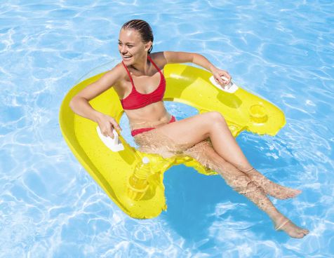 The Intex Sit n' Float is designed with a comfortable backrest and a sturdy seat. It is the perfect lounger for a great time at the lake or pool. With a transparent top panel and a colorful bottom, two air chambers for extra buoyancy and two grab handles for stability, this uniquely designed float is sure to provide a fantastic relaxing experience. Also included are two cup holders for a refreshing drink while you enjoy time in the water.
