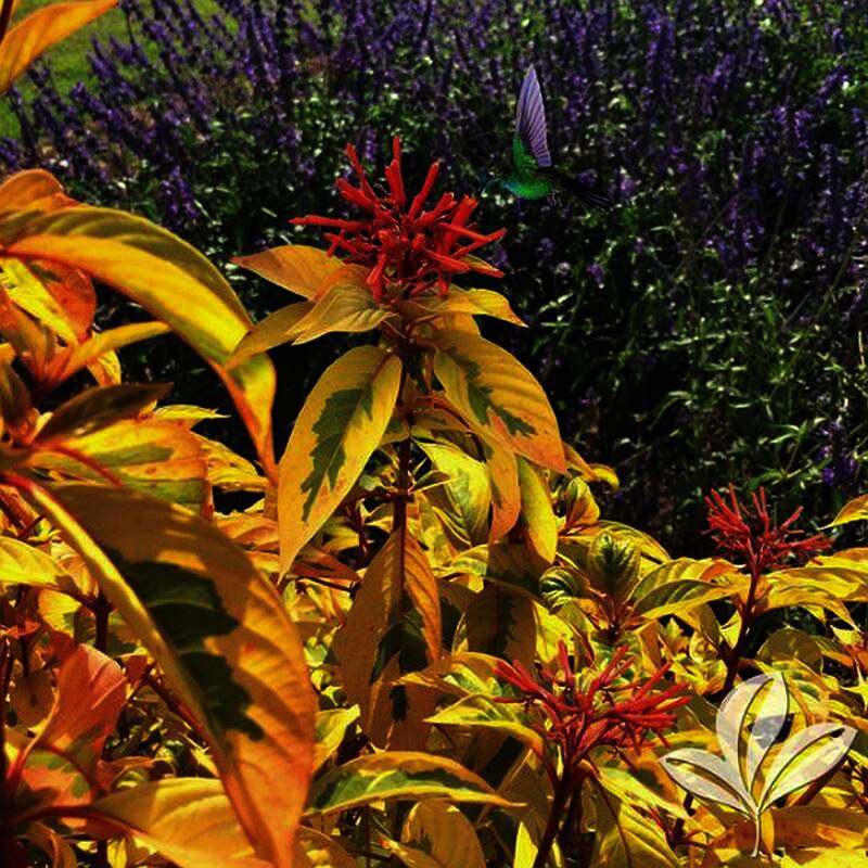 This flashy Firebush features bright green and yellow foliage with sizzling red-orange flowers from spring through fall. Upright spreader reaching 4 to 5 ft tall and wide. Perfect for creating a showy hedgerow or as an accent plant.