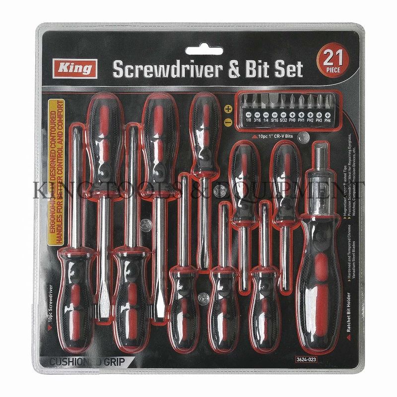21-Piece Screwdriver And Bit Set With Ratchet Handle, Slotted Sae And Phillips