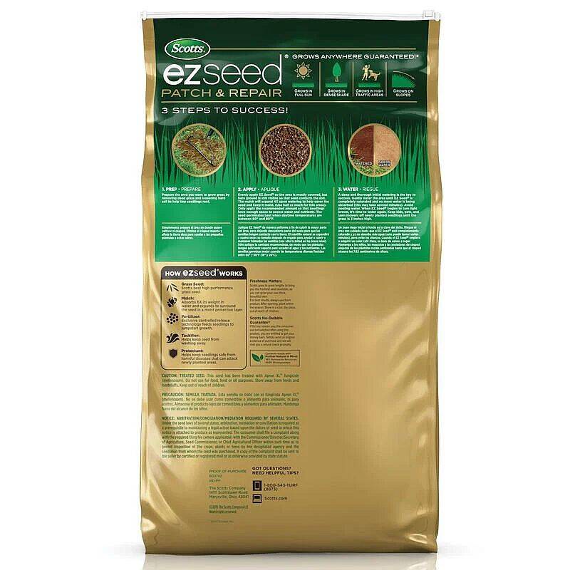 Scotts® EZ Seed® Patch & Repair Tall Fescue Lawns is a revolutionary seeding mix that guarantees seeding success*! The unique combination of Scotts® high performance seed, premium continuous release lawn food, and super-absorbent growing material, make it possible for grass to grow anywhere, guaranteed*! Scotts® EZ Seed® now has a tackifier to reduce seed wash-away on sloped areas of your lawn.