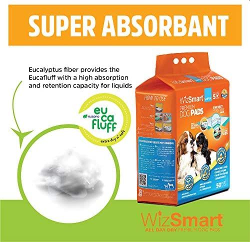 Are you looking for an eco-friendly training pad that is absorbent and sticks to the floor? At WizSmart, we check off all the boxes with our premium dog training pads with adhesives. Our adhesive potty pads will conveniently stay on the floor, so you wont have to constantly adjust them after you or your dogs walk on them. Additionally, with the secure adhesives, you can place the pad on the wall at a 90-degree angle to accommodate your male dog if he likes to lift his leg while going to the bathroom. We sell a variety of sustainable dog pee pads that are all made from recycled and unused baby diapers. Our indoor dog pee pads can hold up to eight cups of liquid. Whether you are looking for a smart way to train your puppy or need a designated potty area for your city dog, we have the pee pad for you. Browse our website for more details about our sustainable dog training pads with adhesive.