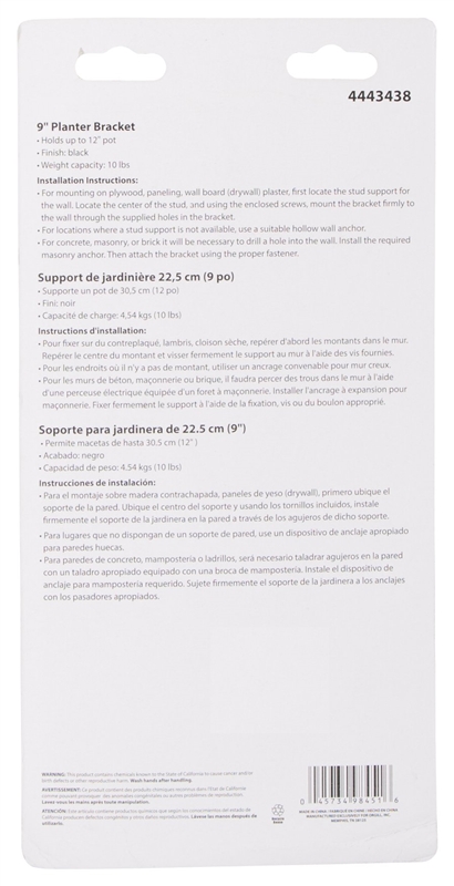 Holds up to a 12-inch pot. Easy installation. 9-inch planter bracket.