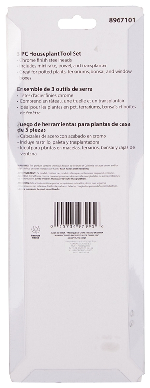 Includes (1) Mini Rake, (1) Trowel, (1) Transplanter