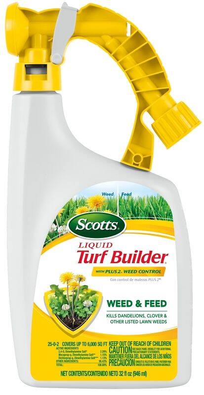 Scotts Turf Builder Weed Killer, Package Size: 32 oz , Liquid, Odor/Scent: Phenoxy, Amber, Compositions: dimethyl ammonium 2,4-dichlorophenoxyacetate, Application Method: Spray