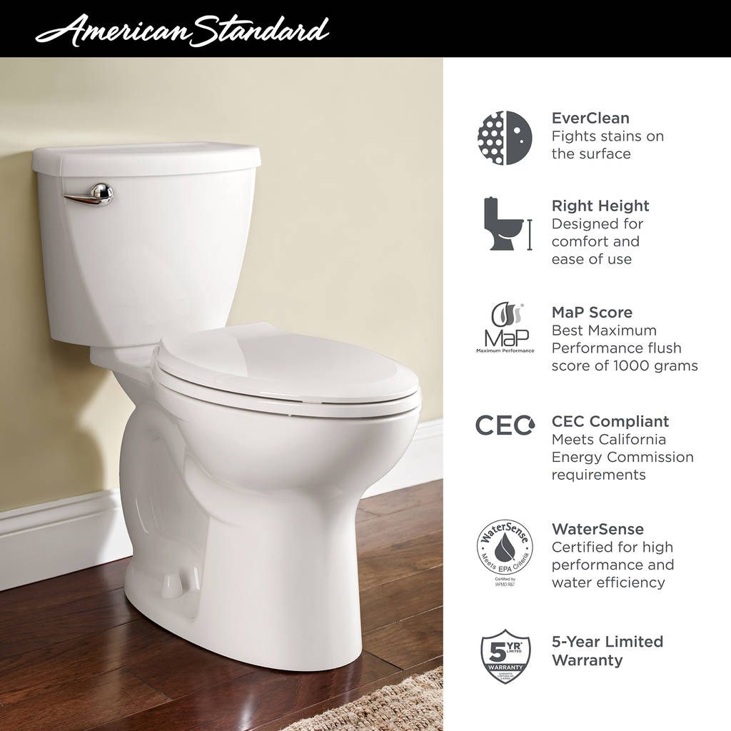 Part of the coordinated Cadet Suite, this high-efficiency, ultra-low consumption model meets EPA WaterSense® criteria and uses 20% less water than standard toilets. Tall 16-1/2 in rim height enhances comfort and ease of use. Its EverClean® surface stays cleaner and longer.