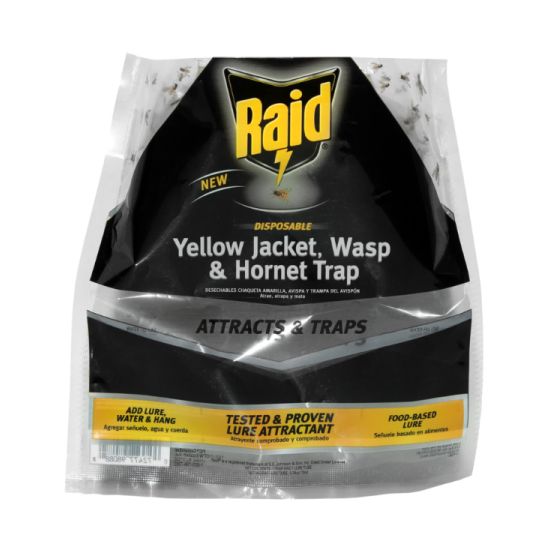 Attracts, traps and kills yellow jackets, hornets and wasps with no poisons or insecticides. Once the pests enter, they are unable to escape, then drown. The trap can be used effectively outdoors. Hanging string included.