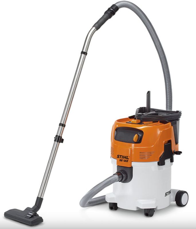 Get a serious clean without serious noise. The STIHL SE 122 features a quiet, powerful motor operating at only 62 dB(A) with 11-percent less noise than the SE 61. Plus, with 27-percent better suction and its larger 7.9 Gal capacity canister, the SE 122 can handle just about anything your job site can throw at it. Need to transition from one type of surface to another? This vacuum features a universal wet/dry suction head and foot-activated depth control so you can switch from wet to dry surfaces seamlessly without needing to change the filter. Three cleanup tools a universal tool, crevice tool and adjustable floor tool are easily stored on a self-contained tool keeper so theyre always at hand when you need them. It also features a 10 suction hose and 25 electrical cord, so you can out-maneuver your mess with ease. When work gets messy, this vac picks up just about anything, including the slack.