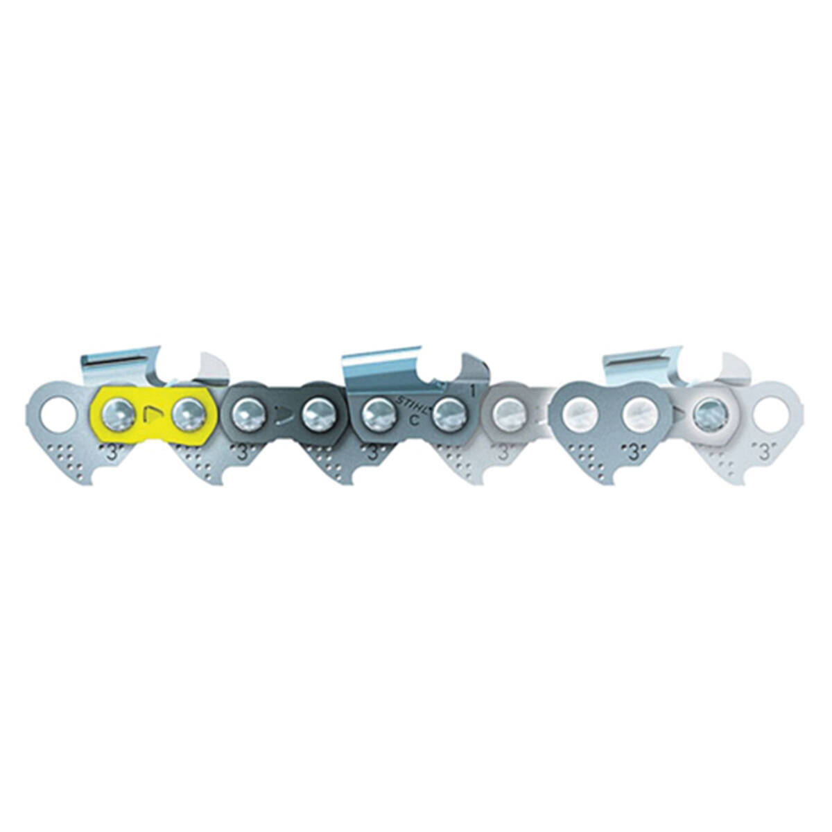 The STIHL PICCO™ Micro™ 3 chain is a low-kickback, narrow kerf, smooth-cutting, and low-profile chain ideal for small to mid-sized chainsaws with between 1.5 kW (2.0 bhp) and 1.9 kW (2.5 bhp). It performs equally well as compared to the previous model, with the only difference being a slight increase in weight. This semi-chisel chain does not usually get dull as fast as a full-chisel chain in normal use and is easier to maintain and sharpen.