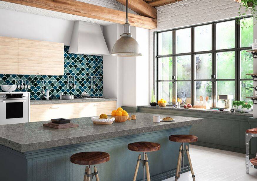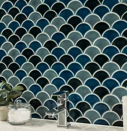 Azul Scallop Tile features stunning blue-green shades in a charming on-trend pattern. Perfect for giving lack-luster kitchens, baths, and other spaces an updated look, this durable backsplash tile makes a style statement on residential or commercial floors, countertops, vanity walls, backsplashes, shower surrounds, and more. With a glossy finish for added impact, Azul Scallop Ceramic Tile is a conversation starter. These tiles are Greenguard Indoor Air Quality Certified® and come mounted on mesh-backed sheets for a simplified installation and professional finish.