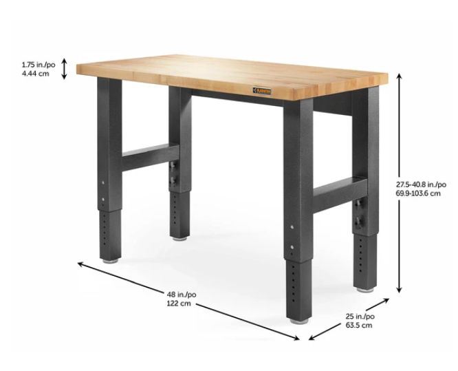 48-Inch Hammered Granite Hardwood Top Adjustable Height Work Bench