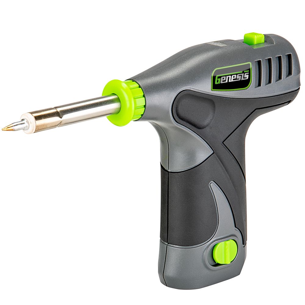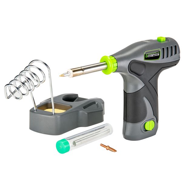 Rapid Heat Up Ready to Use in 50 Seconds. LED On/Off Indicator. 2-Step Switch to Prevent Accidental Start. Iron Holder Included for Safe and Convenient Storage. Lithium-Ion Battery for Longer Run Time Holds Its Charge up to 18 Months in Storage. Removable Battery Extra Batteries Available for Non-Stop Performance! Part of the Genesis 8V Cordless Tool System.