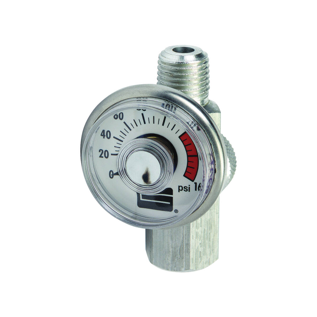 Controls in-line air pressure for paint spray guns or other pneumatic tools. Helps keep air flow at exact operating pressures. Use where precise air flow is desired. Compact, light weight, allows for easy "on the tool" air adjustment. 16psi. NPT thread size is 1/4" on both the male and the female ends.