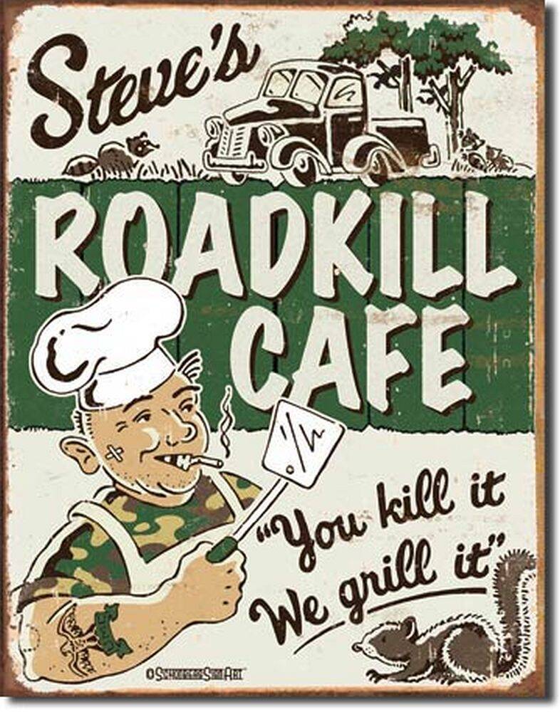 Schonberg Steves Roadkill Cafe You Kill It We Grill It Vertical Tin Sign
