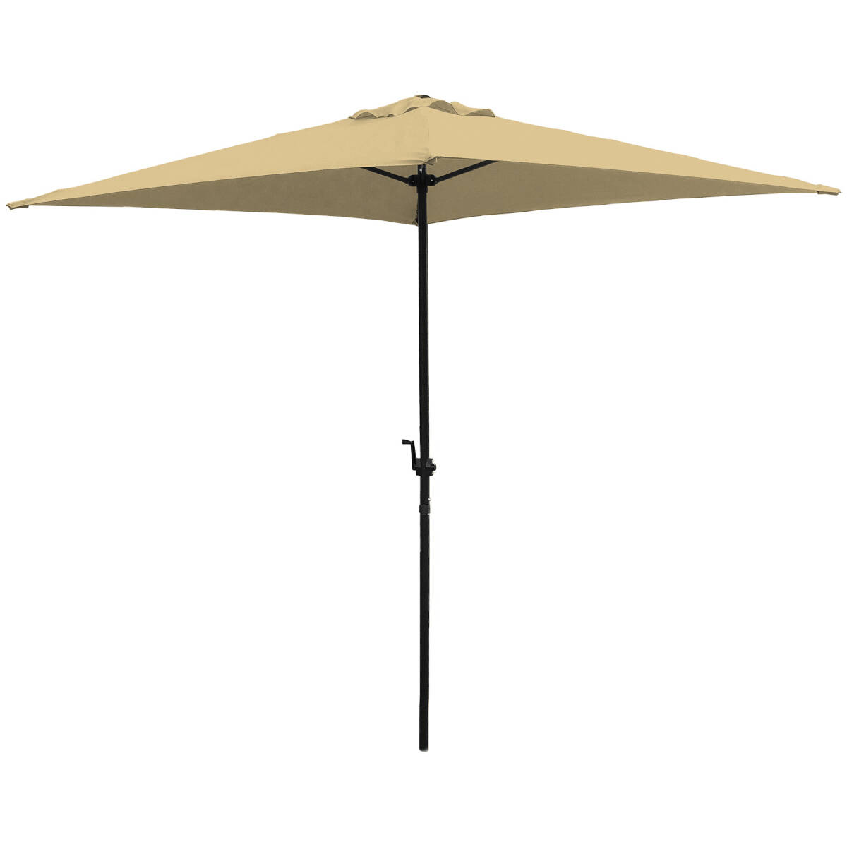 Seasonal Trends Umbrella, Canopy Shape: Square, Canopy Width: 6.5 ft , Canopy Length: 6.5 ft , Number of Ribs: 4, Fabric Material: Polyester, Fabric Color: Taupe, Frame Material: Steel, Frame Color: Black, Opening Mechanism: Manual Handle, Pole Height: 7.8 ft , 6.5 ft L, 6.5 ft W, 7.8 ft H, Resists: Fade, Rust, Suitable for: Outdoor Use