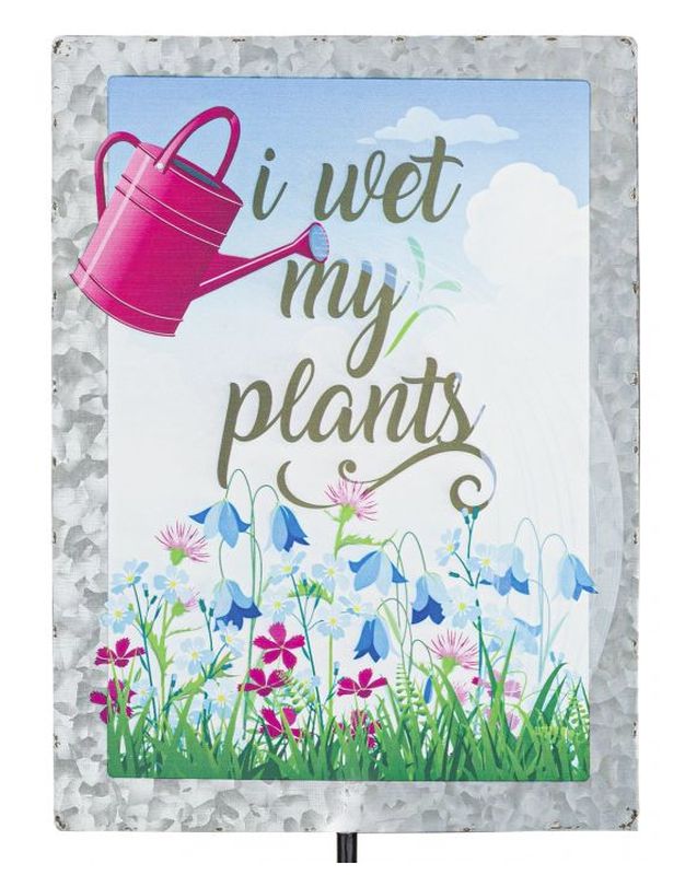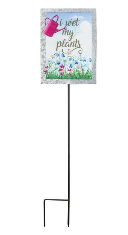 Catchy, fun statements printed on galvanized metal 36-inch stakes adds whimsy and charm to garden spaces and planters. Each stake unique and one of a kind. This item is dual function both as a stake and as a wall decor.