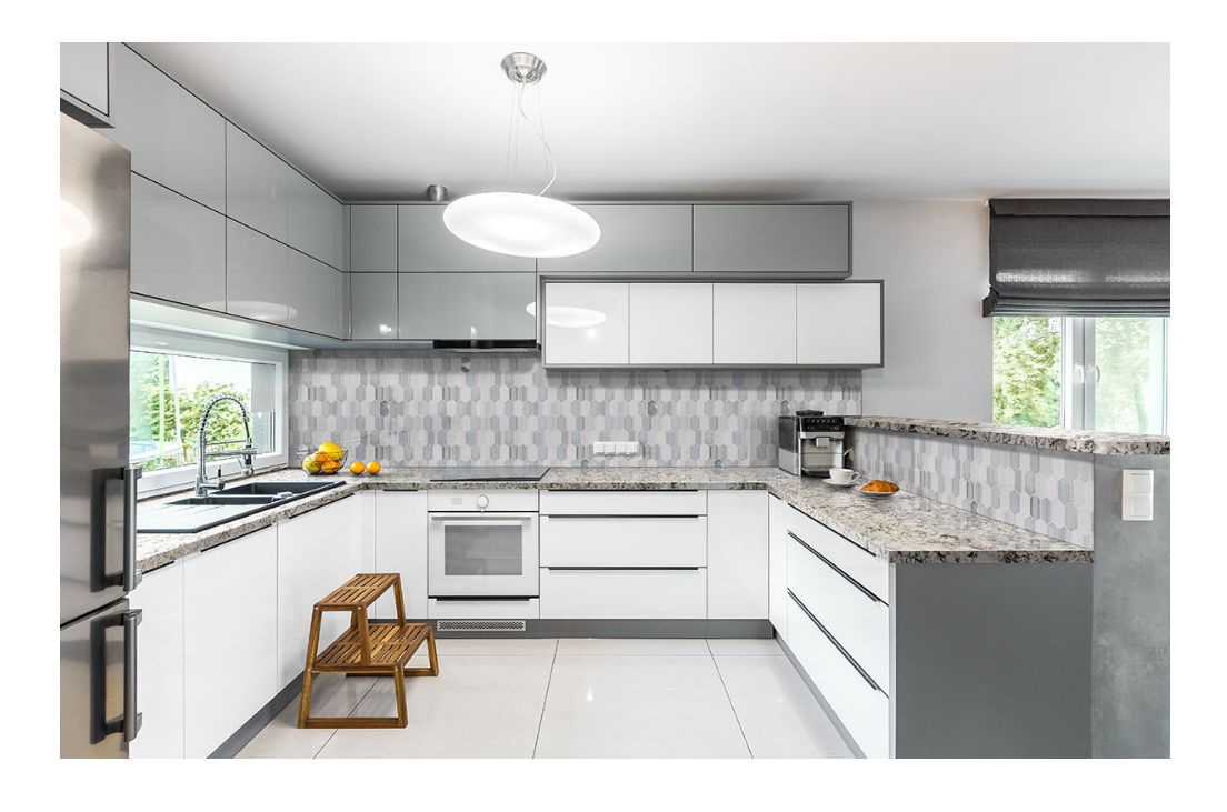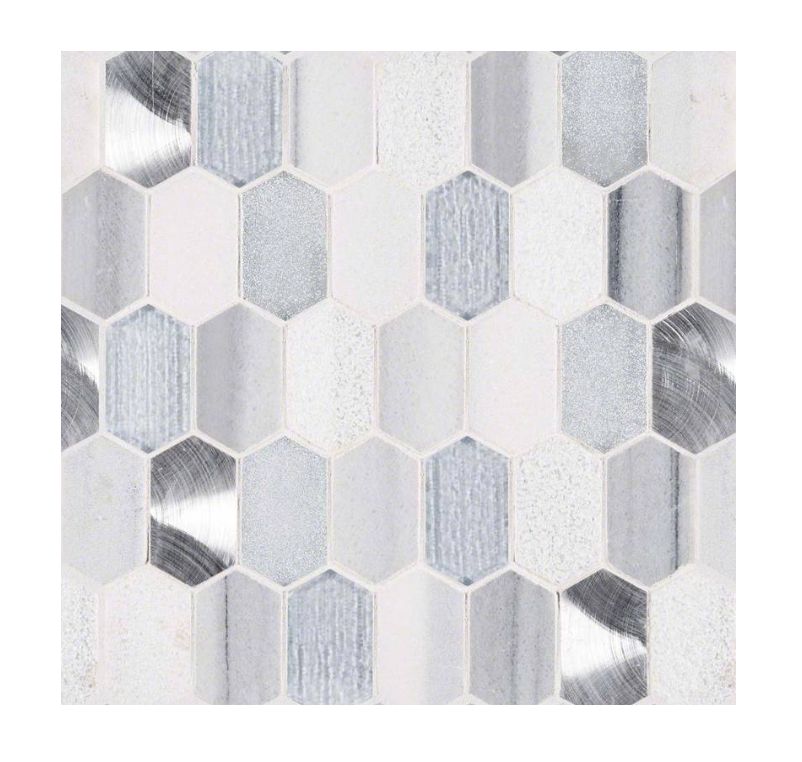 Harlow Picket, a contemporary styled glass-stone-metal blend backsplash tile, features soft whites, grays, and hints of silver partnered together in an interesting picket pattern. These beautiful tiles are perfect for backsplashes in kitchens, entryways, laundries, and mudrooms.