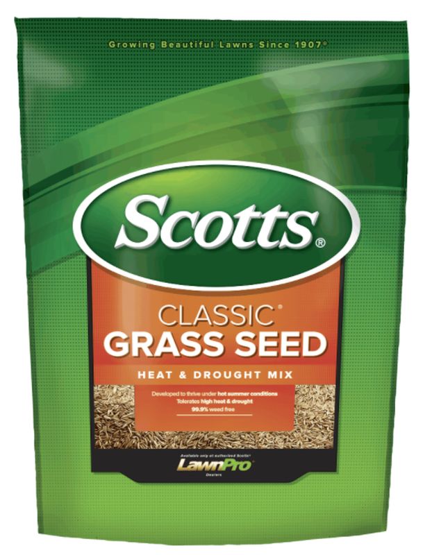 Sometimes your lawn needs a little bit more help surviving under the hot summer sun. Scotts® Classic® Grass Seed Heat and Drought Mix is specially formulated to tolerate heat and drought. This unique mix was developed to thrive under hot summer conditions.