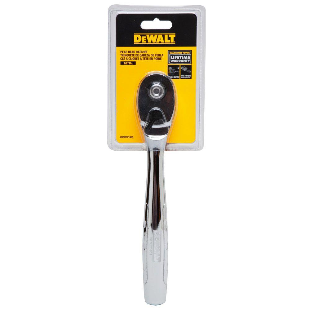 5 degree arc swing and slim head design for maneuverability in constricted areas; 72-tooth gear system for high torque ratcheting; low-profile directional lever helps reduce catch points and for easy one-hand operation; contoured, ergonomically designed handle with anti-slip grooves for comfort and control; chrome vanadium steel construction for strength and durability. PEAR HEAD Drive In=1/2
