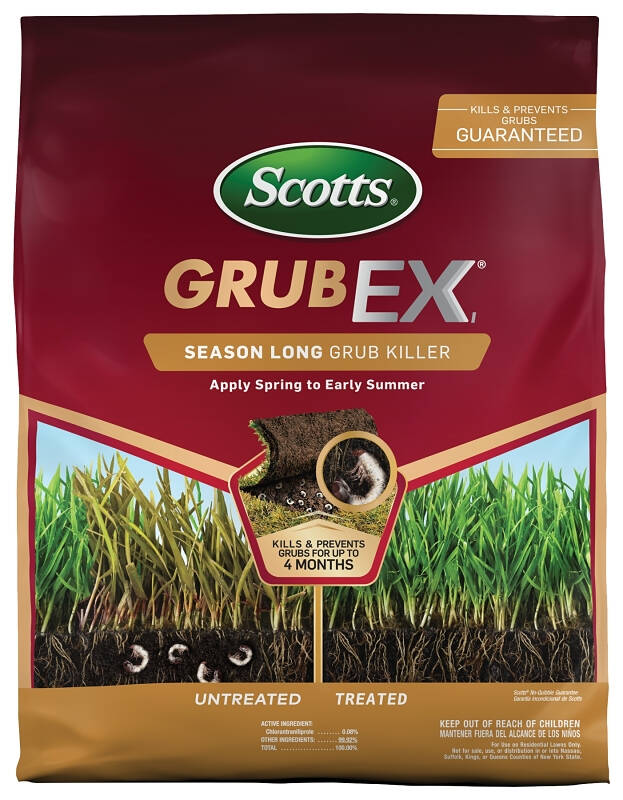 Prevent grubs from damaging your lawn with Scotts® GrubEx®1 season long grub killer. A single application can stop and prevent grubs all season long. Apply during spring or early summer to kill grubs as they develop. Using Scotts® GrubEx®1 season long grub killer annually can also help control Japanese beetle infestations. Easily apply with a Scotts® broadcast, drop, handheld or Wizz® spreader and stop grubs before they damage your lawn.