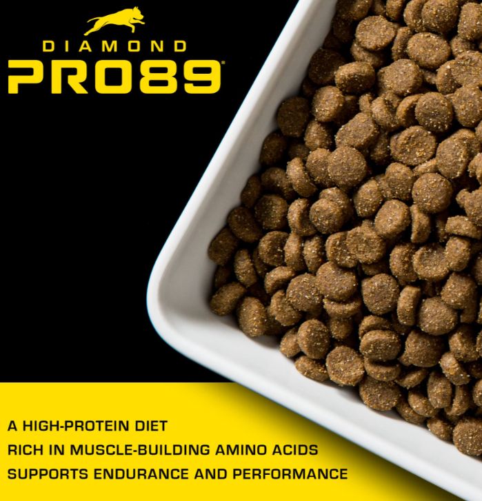 - In Diamond Pro89, 89% of the protein comes from animal sources, so your dogs food works as hard as they do