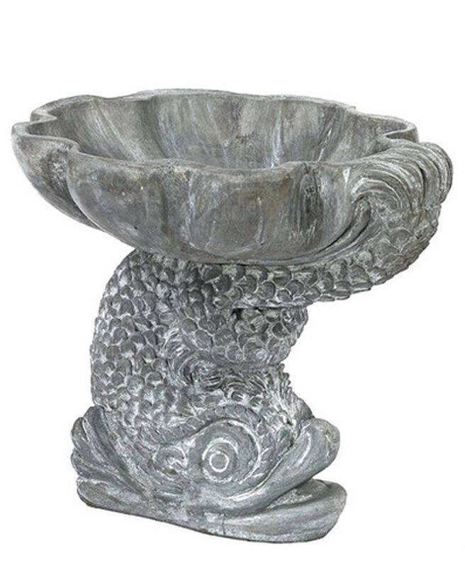 Small Unfinished Dolphin Birdbath. Image shows item in Flint finish, this item is Unfinished (White).