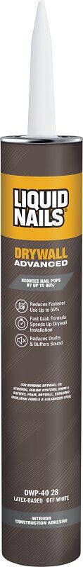 Liquid NailsĀ® Drywall Adhesive, (DWP-24), is a specially formulated construction adhesive for interior drywall installation and correcting minor framing irregularities. Acts fast, bonds strong and buffers sound. Certified by UL Environment to meet the GREENGUARD Gold Standard as a low emitting material.