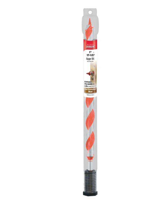 Diablo®’s Auger Bit range provides maximum performance, extreme durability and superior life in nail-embedded wood applications. A two-step cutting action creates holes that are precise and clean. The self-feeding Dura-Tip™ pulls the bit while the dual cutting edge delivers an effortless, smooth drilling experience in wood with nails. Deep flutes enhance the chip evacuation process for more holes per charge. Quick change shank increases stability and durability in cordless and corded impact wrenches and drill drivers.