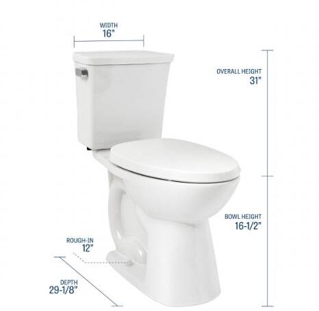 | Includes | toilet bowl, 1.28 gpf high efficiency tank, slow close seat, wax ring, polyethylene flange, flange bolts and caps, and installation instructions |