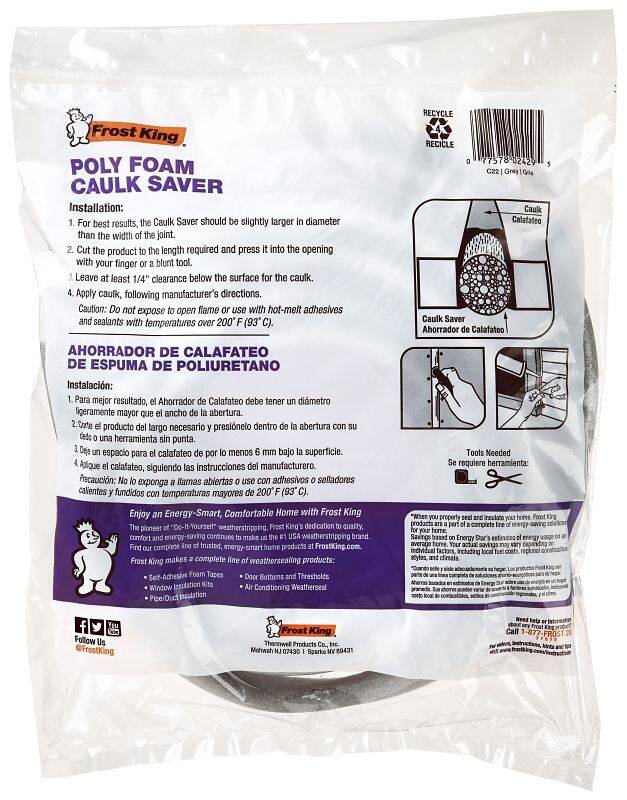 • Made of durable, resilient poly foam, it works with virtually every type of caulk and sealant