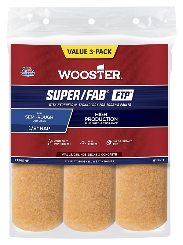 1/2-Inch Nap, 9-Inch Professional Super Fab FTP Paint Roller Cover, 3-Pack