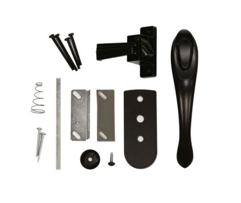 Hardware kit includes necessary parts to add or replace a push button handle. Package contains outside push button handle and inside paddle with night lock. Fits 1 in thick doors.