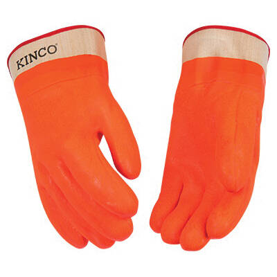 Kinco Gripping Gloves, Men's Gender, Size: L, PVC Coating, High-Visibility Orange, Straight Thumb, Lined, Foam Lining, Industrial Grade