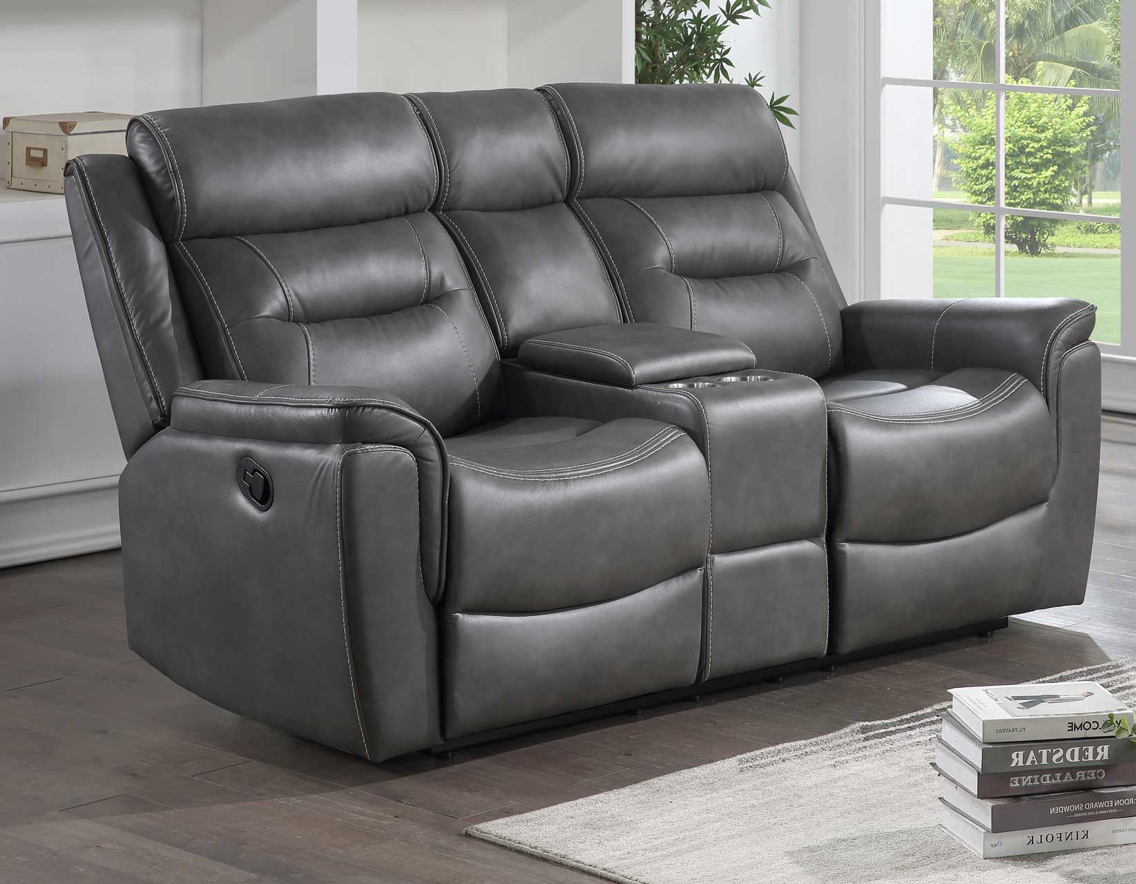Nash Gray Leatherette Manual Reclining Loveseat With Console