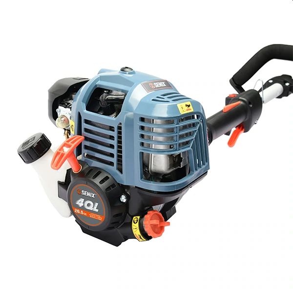 The Senix GTC4QL-L 4QL Gas Powered 26.5CC Curved Shaft Grass Trimmer features a 4-cycle engine that does not require the mixing of gas and oil but remains lightweight, smooth and powerful. The curved shaft design with a standardized coupler provides added comfort and use of attachments.