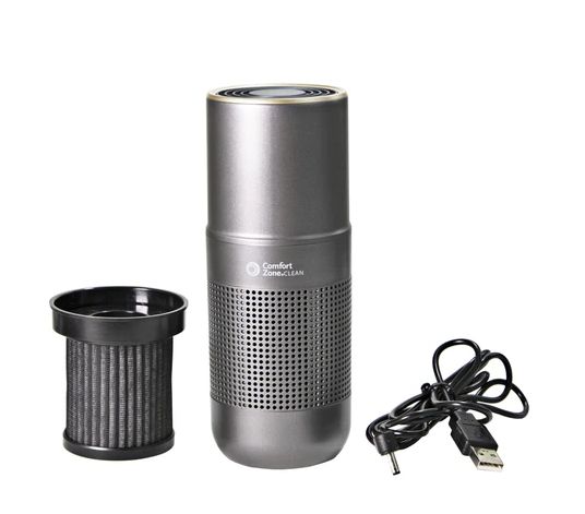 Improve your indoor air quality with the Comfort Zone Mini Air Purifier. Equipped with an air filter, this will purify up to 99.97% of airborne particles as small as 0.3 microns. Things such as odors, allergens, pollens, pet dander and more can't stand up to this system!
