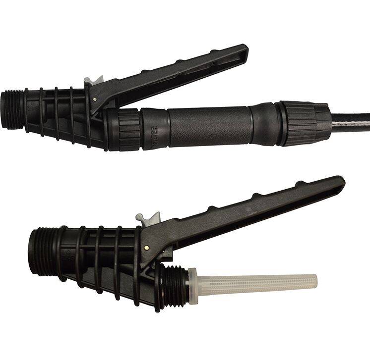 - Professional-grade shut-off with comfortable grip; lock-on feature; and easy-to-clean, in-line filter.