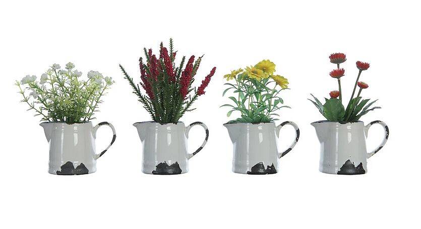 White Distressed Ceramic Pitcher With Faux Flowers, Each, Assorted Styles