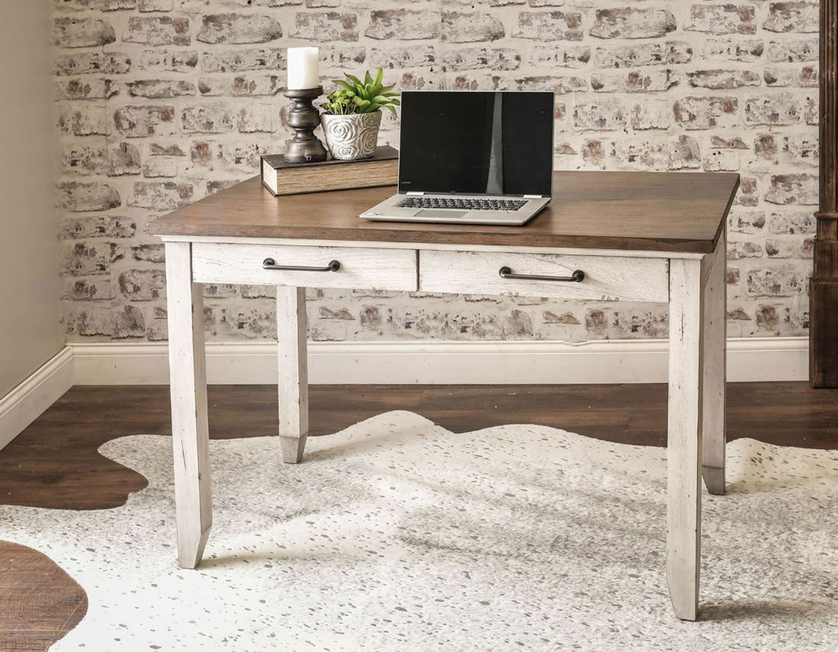 Perfect for your farmhouse-inspired home, the Bear Creek Multi-Function Desk offers just the right mix of casual and rustic-inspired design to blend with todays decorating environments. The two-tone combination of white and honey smoke finish works well with any casual upholstery setting and features distressing that makes the table look like vintage heirlooms in any room. The Multi-Function Desk features two working drawers and can be used in a home office or in a larger room as a Desk and/or Sofa Table.
